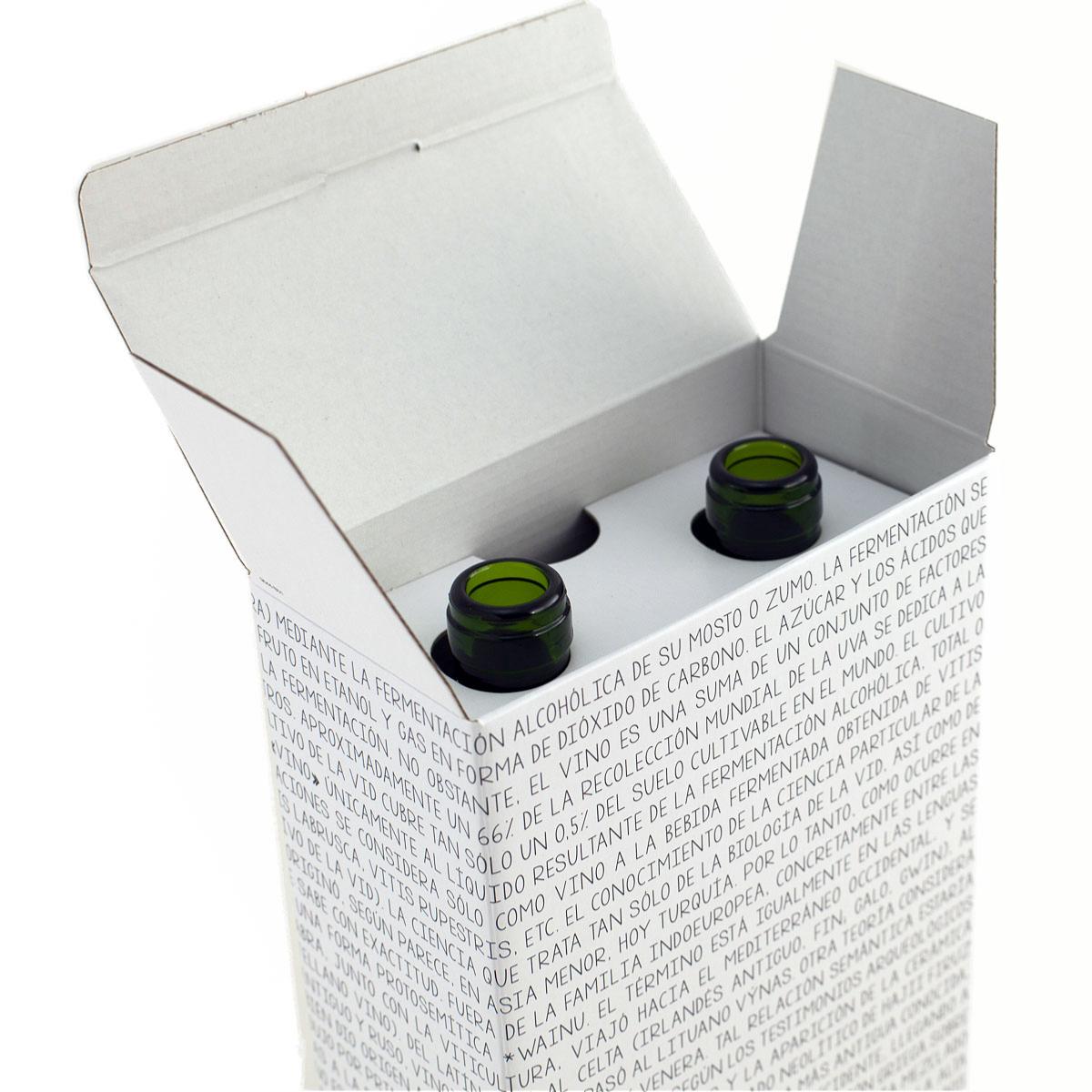 Caja para 2 botellas, 100% anónima, material folding impreso.